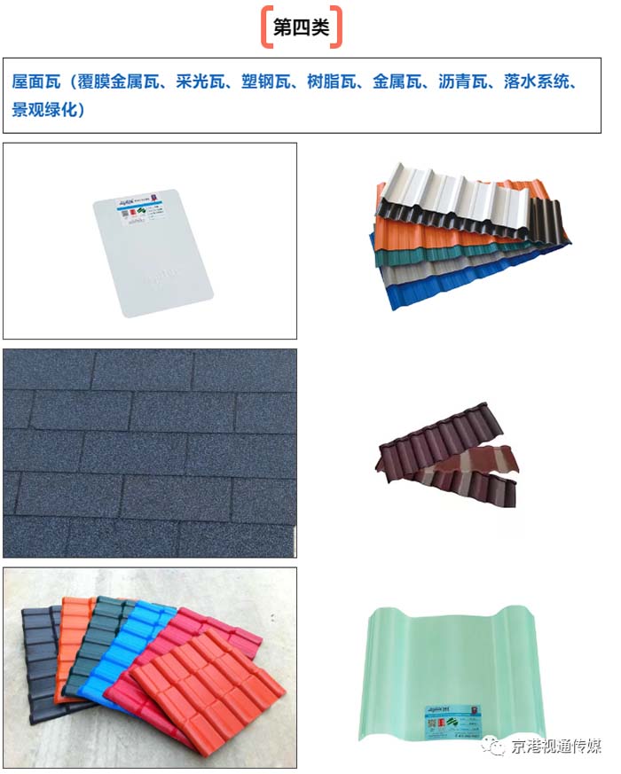 裝配式構(gòu)件、全裝修與內(nèi)裝工業(yè)化、屋面墻材、瓦材、其它部品部件;